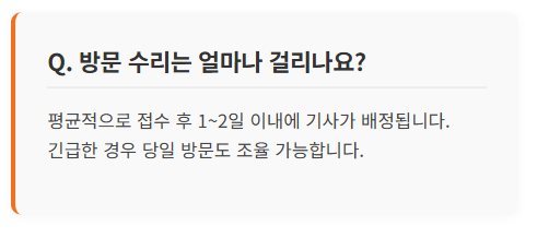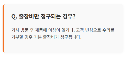 무상 보증 기간이 지난 경우 출장비가 부과됩니다. 시간대에 따라 요금이 다르게 적용되니 참고하세요.