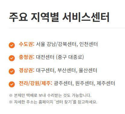 전국 11개 서비스센터와 340여개의 대리점 네트워크를 통해 신속한 출장 수리 서비스를 제공하고 있습니다.
