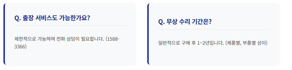 토요일 출장서비스는 평일보다 2시간 단축 운영되며, 7~8월 하절기에는 수요가 급증하므로 사전 예약이 필수입니다.
