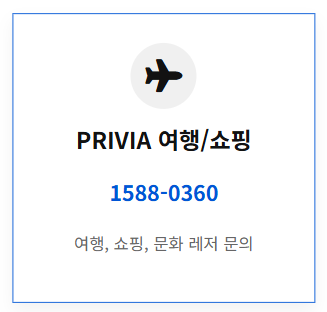 PRIVIA 서비스: 1588-0360 (여행, 쇼핑, 문화, 레저 문의)