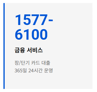 1577-6100은 장기 또는 단기 카드대출 관련 상담 전용 번호로, 24시간 연중무휴로 운영됩니다.