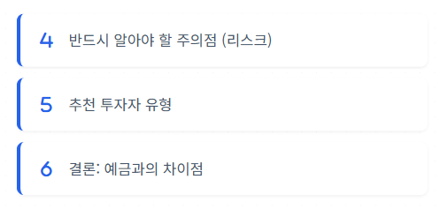 만기 1~2년, 목표수익률 연 3~4%대. 우량 채권 중심 투자로 안정성 추구.